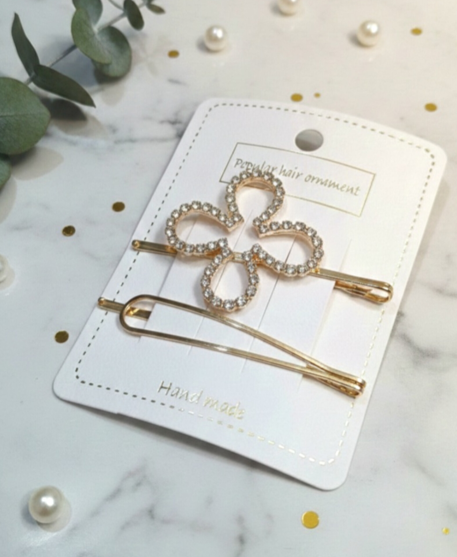 مینی کلیپس فلزی نگیندار طلایی | اکسسوری ظریف مو با طراحی متنوع