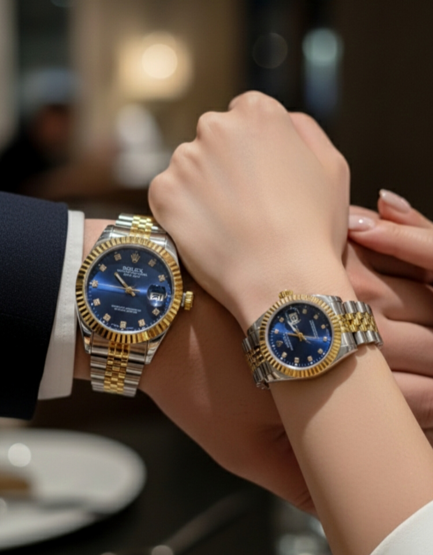 ست ساعت رولکس زنانه و مردانه استیل صفحه سورمهای، نمایش تاریخ