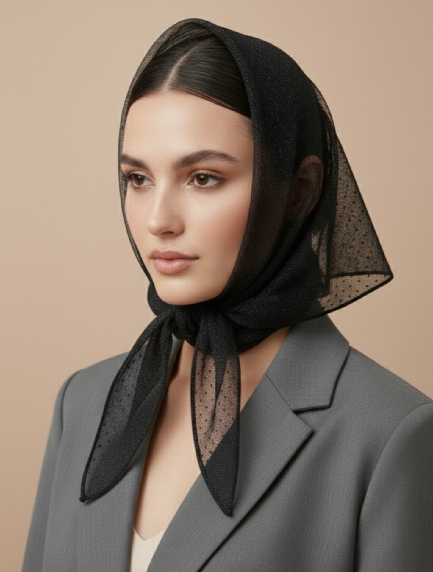 مینی اسکارف گیپور مشکی لبهدوزیشده طرح مثلثی