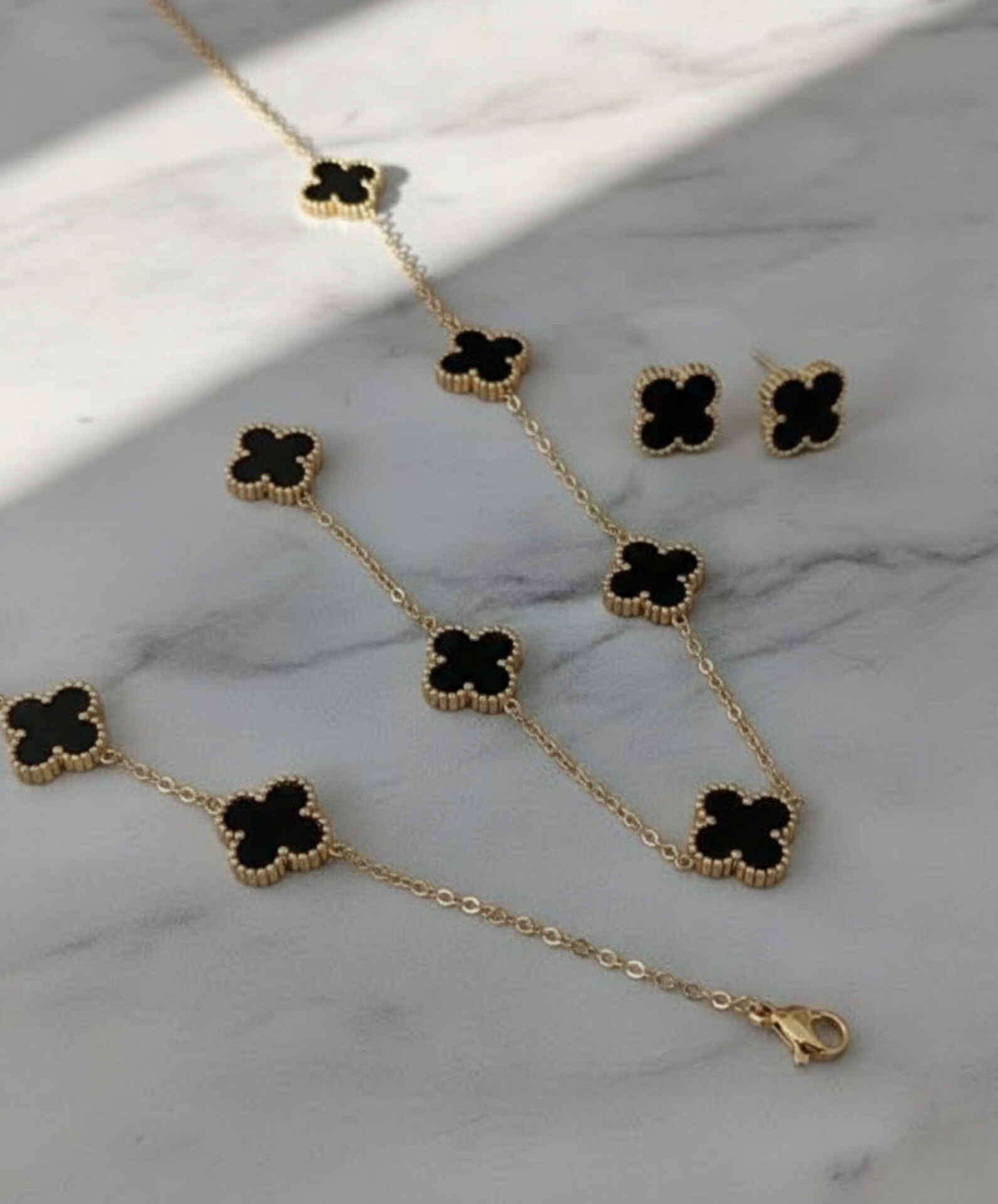 ست ونکلیف استیل مشکی شامل گردنبند، دستبند و گوشواره
