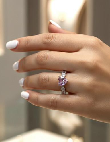 انگشتر نگین قلبی بنفش فریسایز | ظریف، درخشان و الهامگرفته از جواهرات لوکس