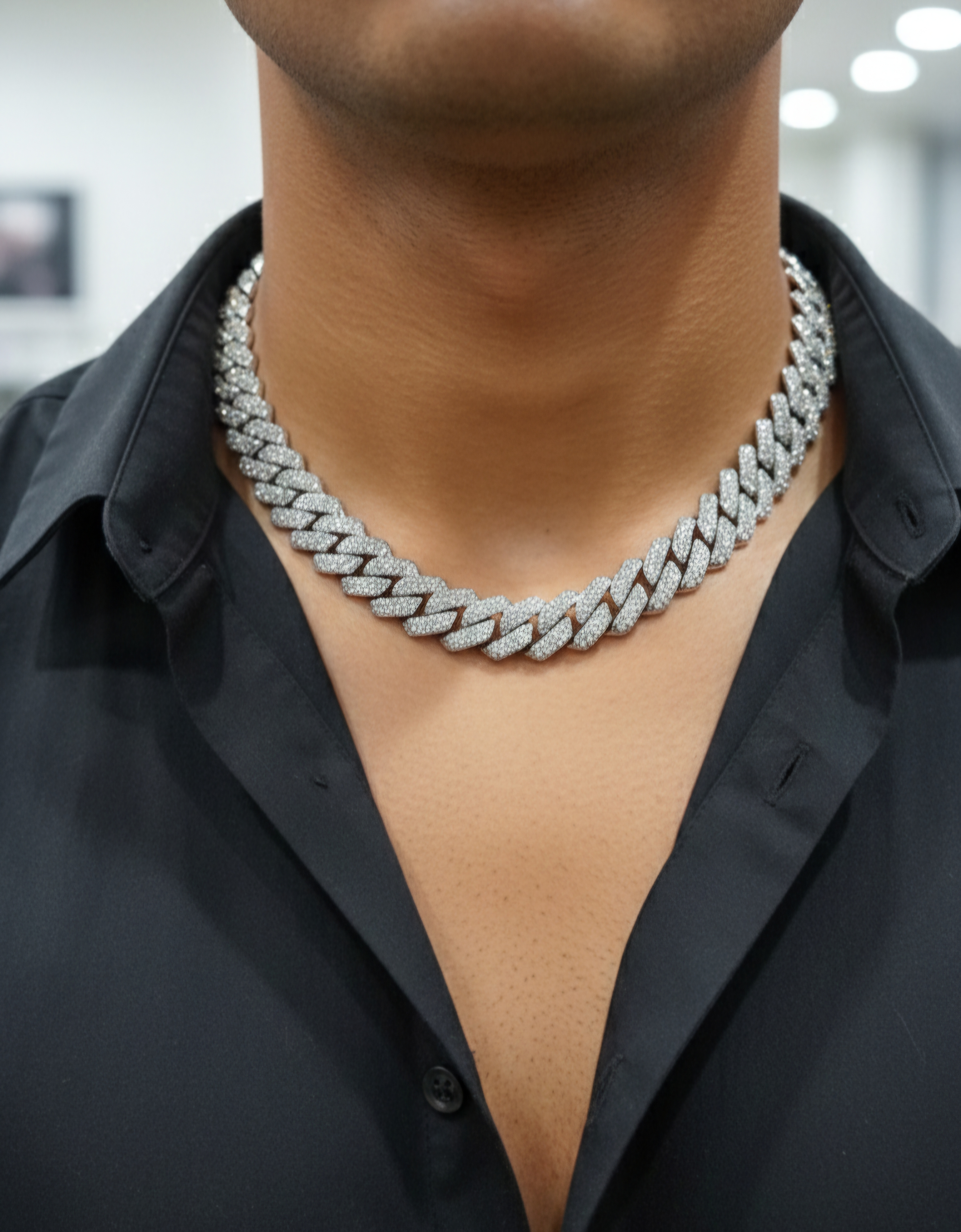 گردنبند دخترانه کرومی برجسته با زنجیر استیل نقرهای