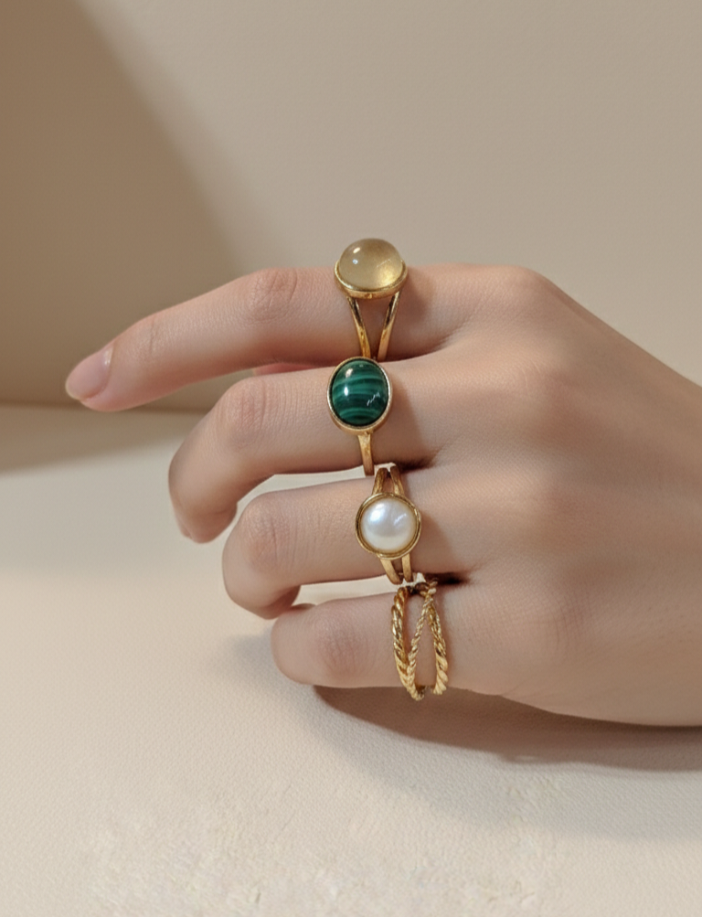 ناموجودپک انگشتر زنانه ۶ عددی طلایی نگیندار و مارپیچ سایزبندی متنوع