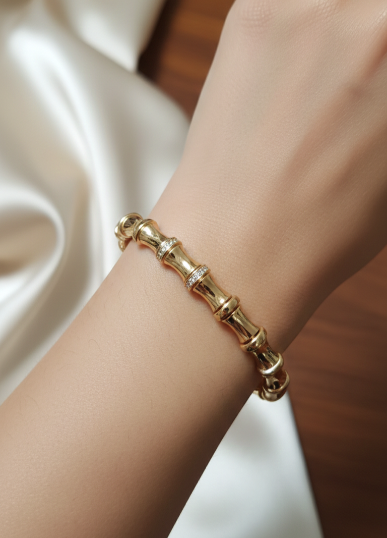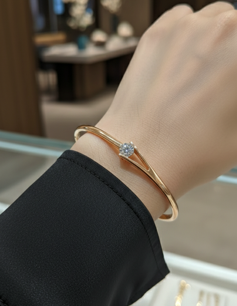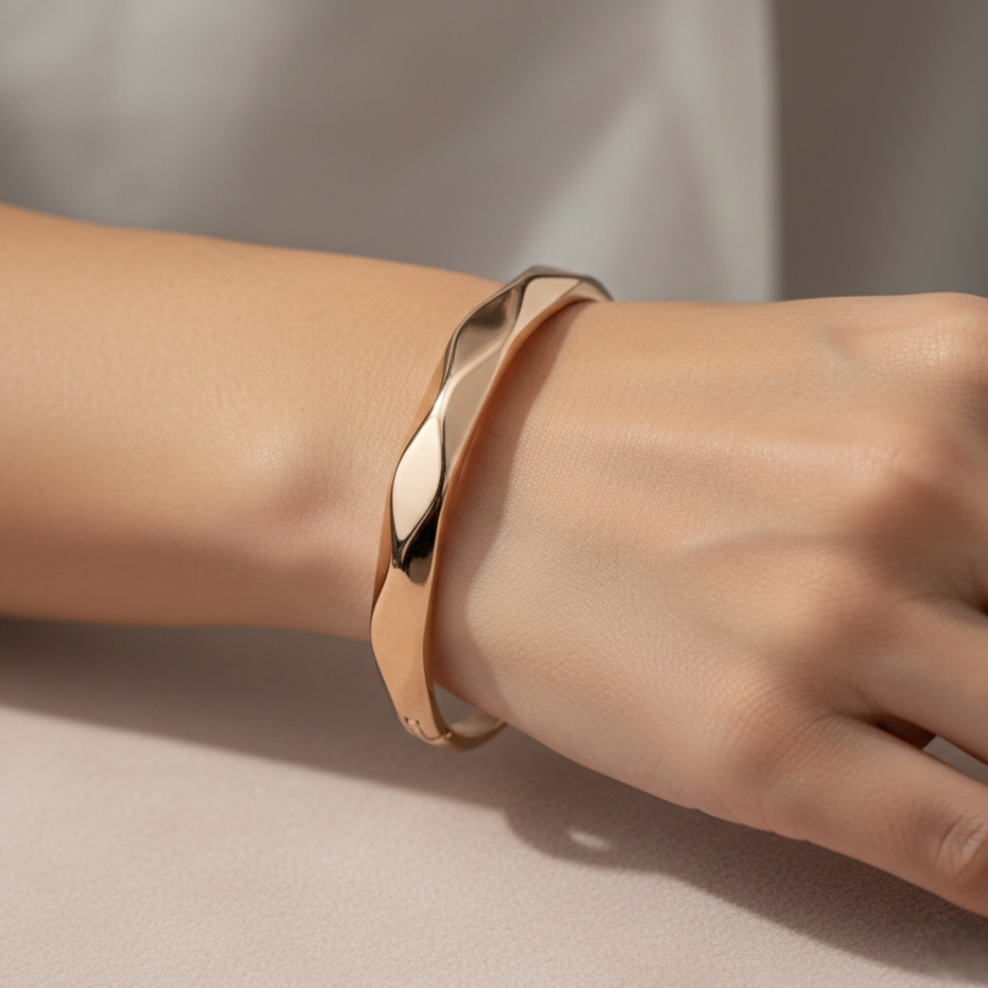 ناموجوددستبند النگویی ژوپینگ | استیل ضدزنگ آبکاری طلا با طرح لوزی