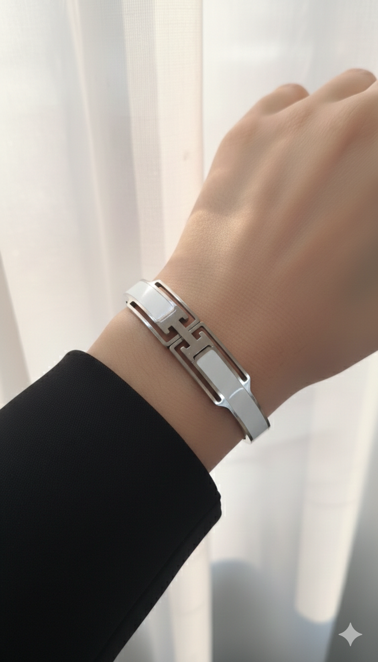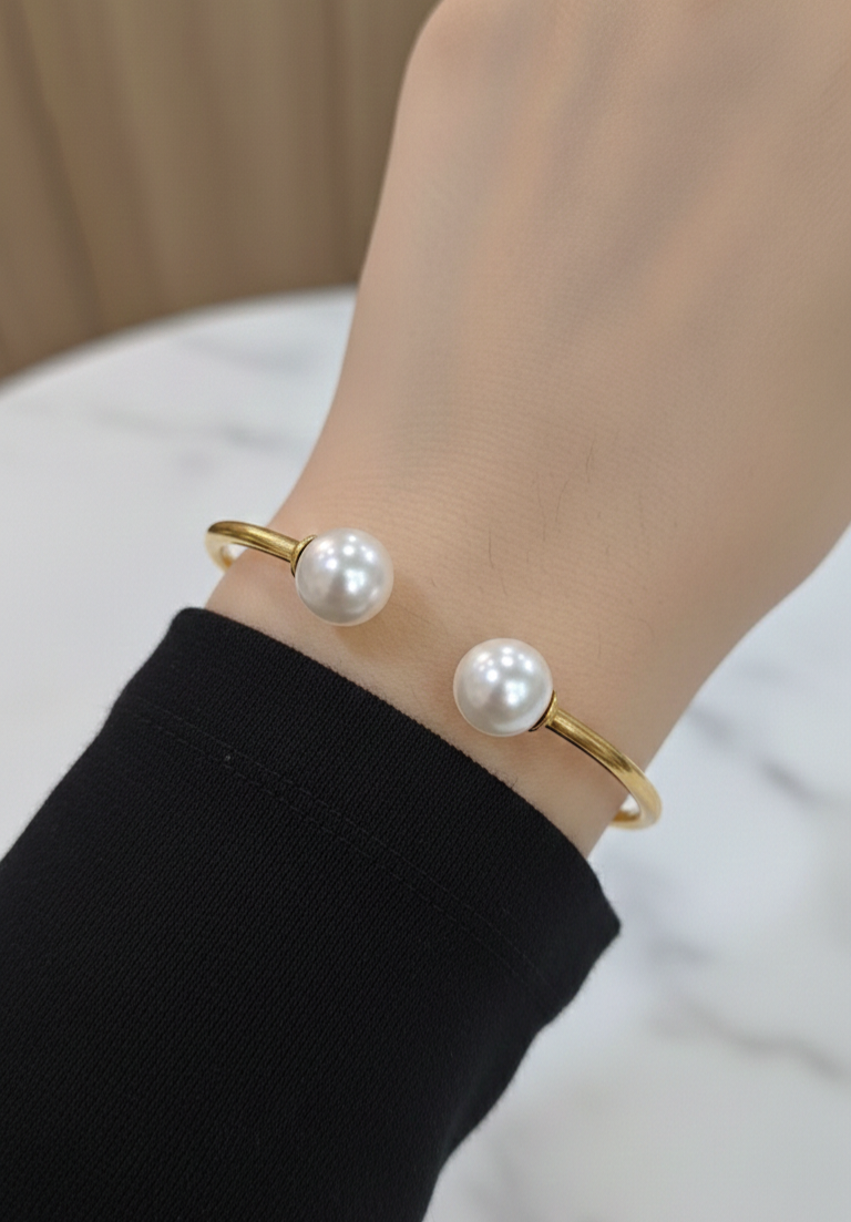بنگل استیل نقرهای با مروارید و قفل لولایی — سبک کارتیر-مانند، شیک و راحت