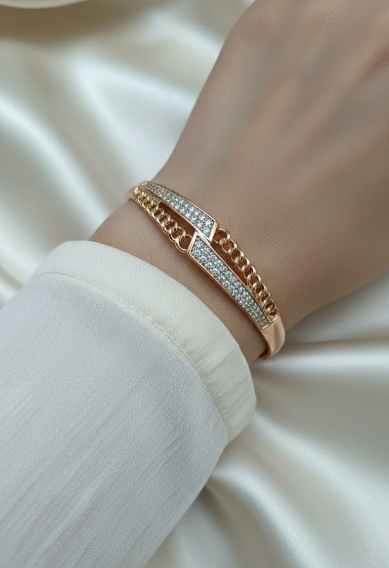 دستبند النگویی ژوپینگ طلایی نگیندار بیضی | رنگ ثابت و براق