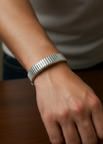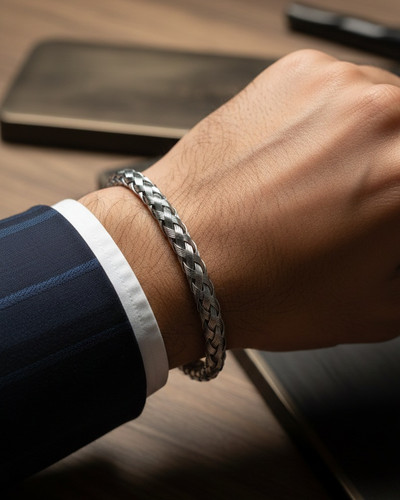دستبند مردانه استیل بافت ریز – طراحی شیک و مقاوم