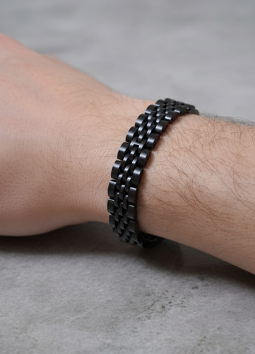ناموجوددستبند استیل مردانه سیاه قلم قفل مگنتی | انتخاب شیک و مقاوم
