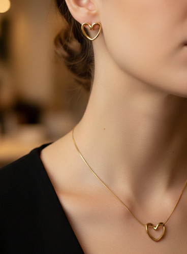 نیمست قلبی طلایی با پلاک مفتولی و گوشواره میخی