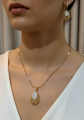 ناموجودست سهتکه ونکلیف طلایی | گردنبند، گوشواره و دستبند