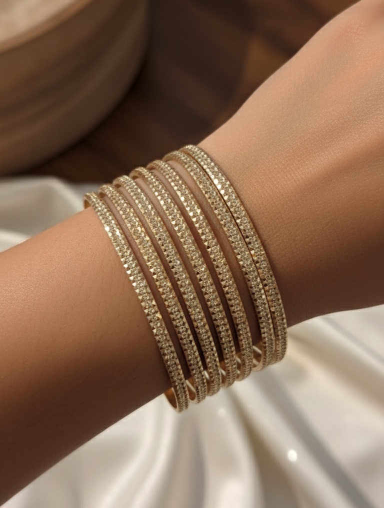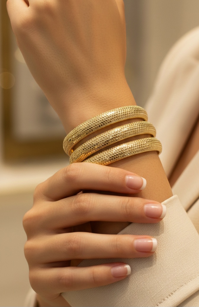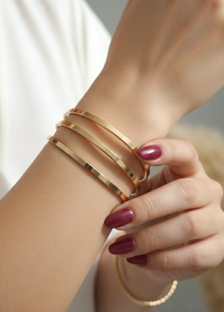 النگوی طلایی زنانه — النگو استیل طلایی، قطر ۶۳ مم، ضخامت ۱۹ مم، مناسب روزمره و مهمانی
