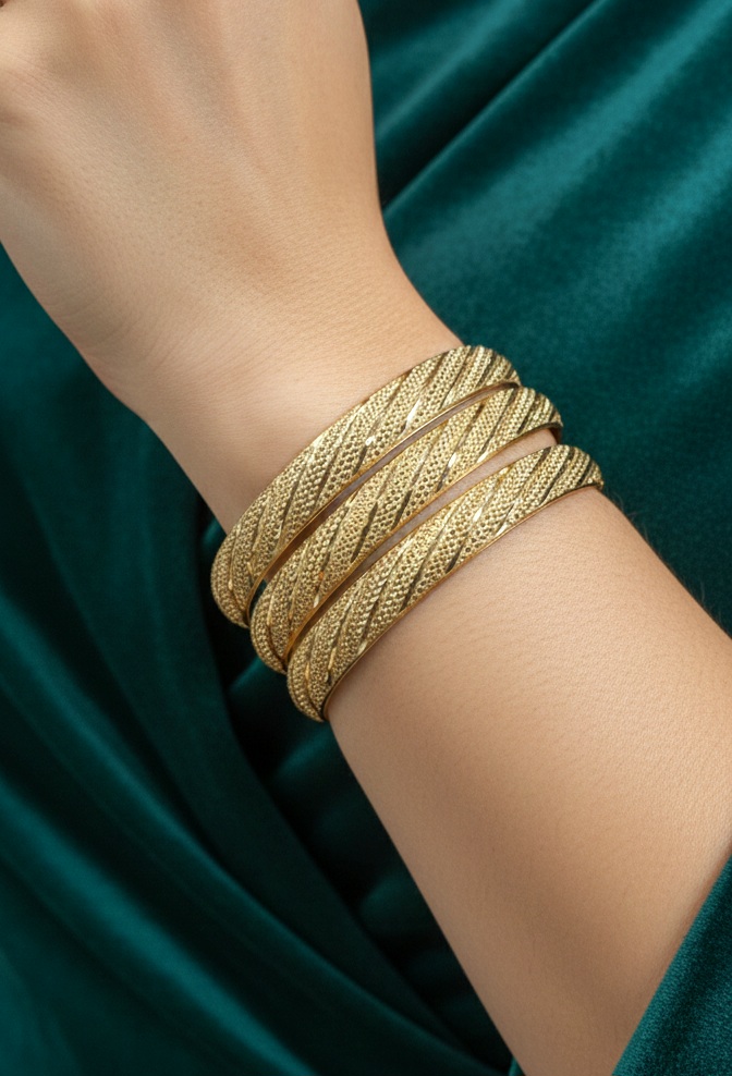النگو طلاروس زنانه حکاکیدار سایز ۳ و 4