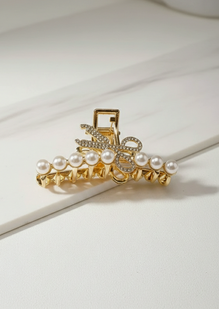 کلیپس سایز متوسط طلایی زنانه با جنس پلاستیکی طرح فلزی – سبک و کاربردی برای استفاده روزانه