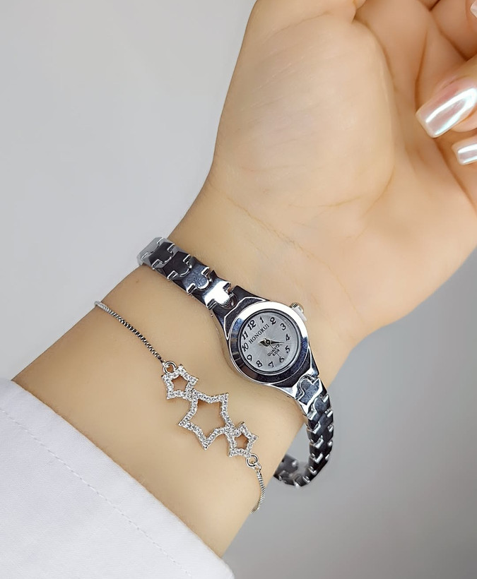 در نگاه اول، ساعت Hongrui با صفحه کوچک و بند استیل براقش، حس لوکس و مینیمال رو منتقل میکنه. وقتی روی مچ قرار میگیره، انگار یه تکه جواهره نه فقط یه ساعت. سایز کوچک صفحه باعث میشه گزینهای عالی برای کسانی باشه که از ساعتهای بزرگ خوششون نمیاد یا به دنبال سادگی با شیک بودن هستن.