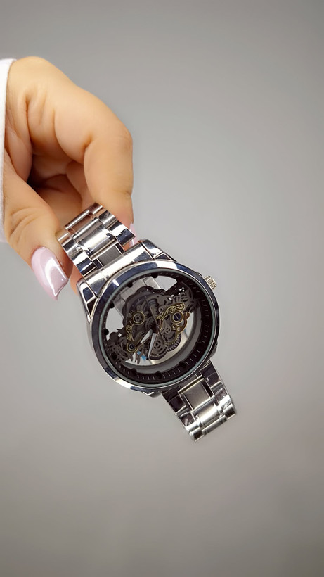 پشت قاب شیشهای باعث شده ساعت فقط یک وسیله زمانسنج نباشد؛ بلکه جزئیات فنی داخل آن دیده شود و حس خاص بودن بیشتری منتقل کند.