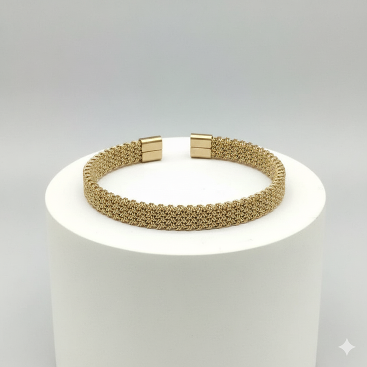 بافت حصیری باعث میشود دستبند روی مچ کاملاً بنشیند و هماهنگ با بدن باشد.