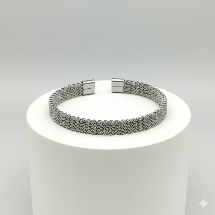 در بررسی این نوع دستبندها با بافت حصیری، یکی از مزیتهای اصلی، انعطافپذیری بالا و هماهنگی آن با مچ دست است؛ برخلاف بندهای سختتر، این مدل با حرکت دست بهخوبی همراه شده و احساس راحتی میدهد. فلز استیل با کیفیت، ظاهری براق و مقاومت در برابر خراش دارد، که باعث شده مدلهایی مثل این انتخابی منطقی برای استفاده طولانیمدت باشند.