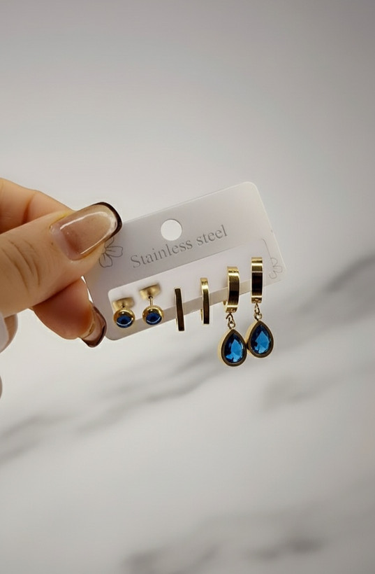 نگینهای آبی روی گوش بهخاطر رنگ شفاف و براق، حتی با نور کم هم دیده میشوند و آویز اشکی حالت رسمیتری به استایل میدهد. مدلهای سادهتر این پک کمک میکنند تا از شلوغ شدن استایل جلوگیری شود و بتوان ترکیبهای متفاوت ساخت. وزن کم و سایز استاندارد باعث میشود برای استفاده طولانیمدت راحت باشد.