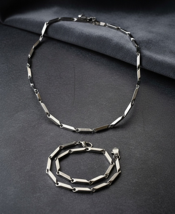 یکی از مزیتهای این ست، ضخامت ۳ میلیمتری آن است؛ ضخامت محبوبی که ظاهر مردانه و جذاب دارد اما اغراقشده یا سنگین نیست. روی تیشرت ساده، بافت، هودی یا پیراهن مردانه جلوهای شیک و مرتب ایجاد میکند و دستبند نیز بهخوبی در کنار ساعت یا بهتنهایی قابل استفاده است.