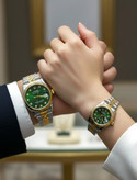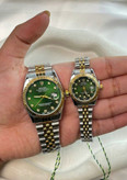 Rolex Green Dial Couple Watch Set – Stainless Steel with Date Display