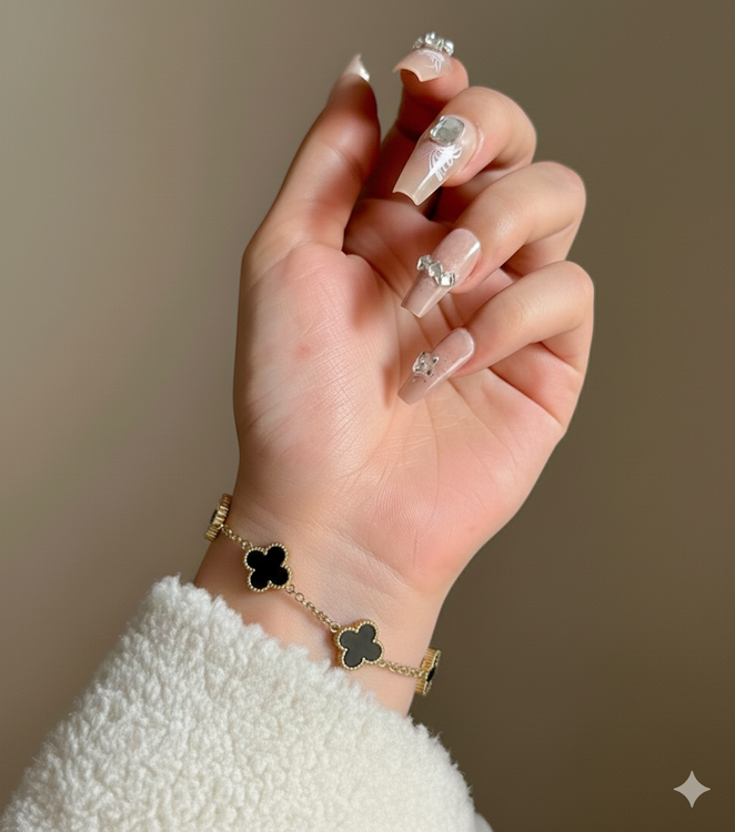 رنگ مشکی در زیورآلات همیشه انتخاب امن و جذابی است، زیرا با هر رنگ لباس ست میشود و جلوه خاصی به دست میدهد. ترکیب آن با طلایی، ظاهر این دستبند را رسمیتر و لاکچریتر کرده و باعث میشود حتی در کنار ساعت یا اکسسوریهای فلزی دیگر هم جلوه خود را حفظ کند.