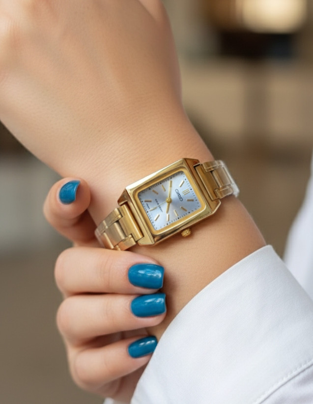 ساعت زنانه Casio با طراحی مستطیل و بند استیل طلایی، سبک و راحت است و جلوهای شیک و مدرن دارد. مقاومت در برابر آب، استفاده روزمره را آسان میکند و دوام استیل، ماندگاری محصول را تضمین میکند. در مقایسه با ساعتهای پلاستیکی یا کم دوام، این مدل شیک و لوکس به نظر میرسد و گزینهای عالی برای هدیه و استایل روزمره است.