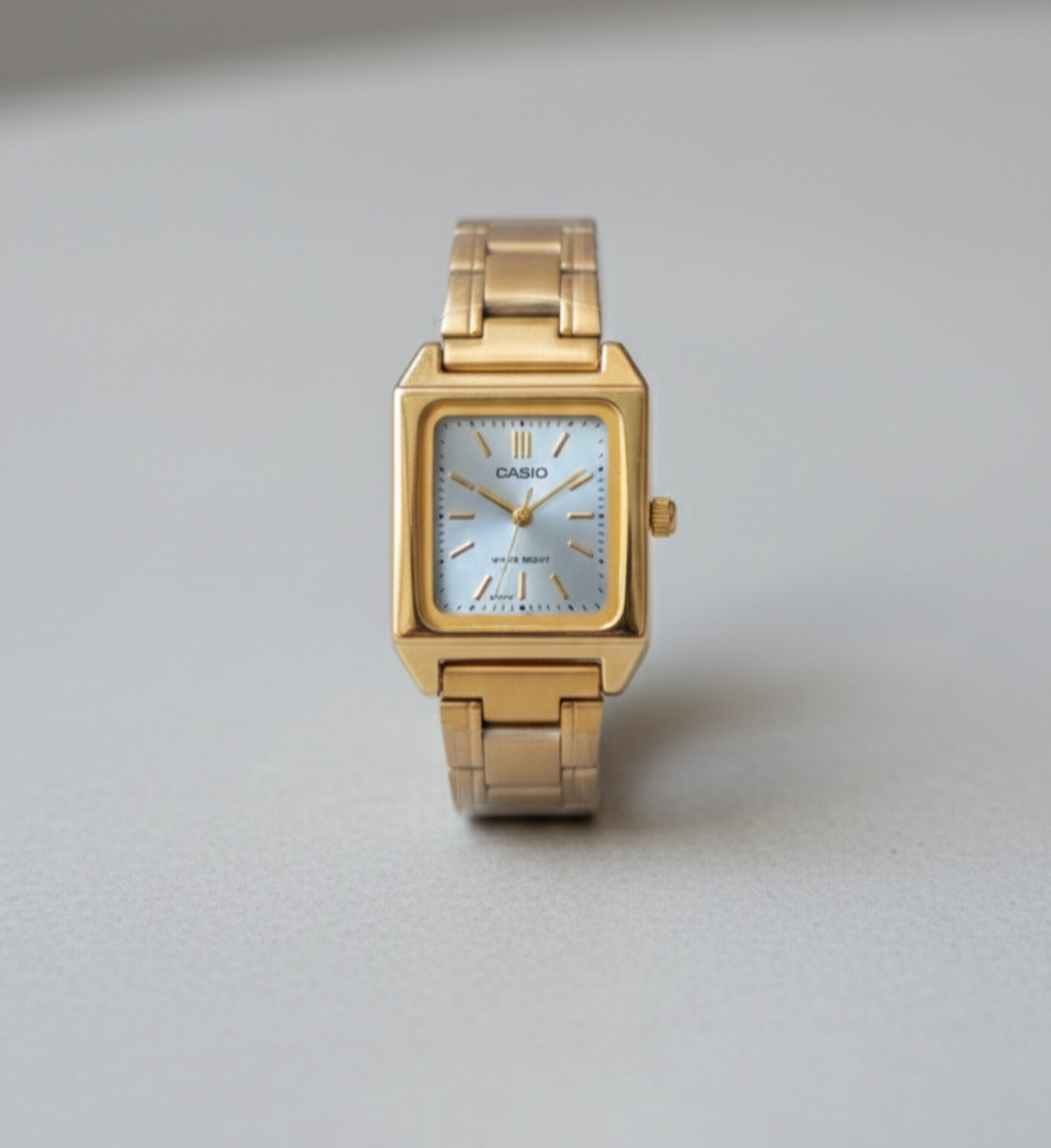 ساعت زنانه Casio با طراحی مستطیل و بند استیل طلایی، سبک و راحت است و جلوهای شیک و مدرن دارد. مقاومت در برابر آب، استفاده روزمره را آسان میکند و دوام استیل، ماندگاری محصول را تضمین میکند. در مقایسه با ساعتهای پلاستیکی یا کم دوام، این مدل شیک و لوکس به نظر میرسد و گزینهای عالی برای هدیه و استایل روزمره است.