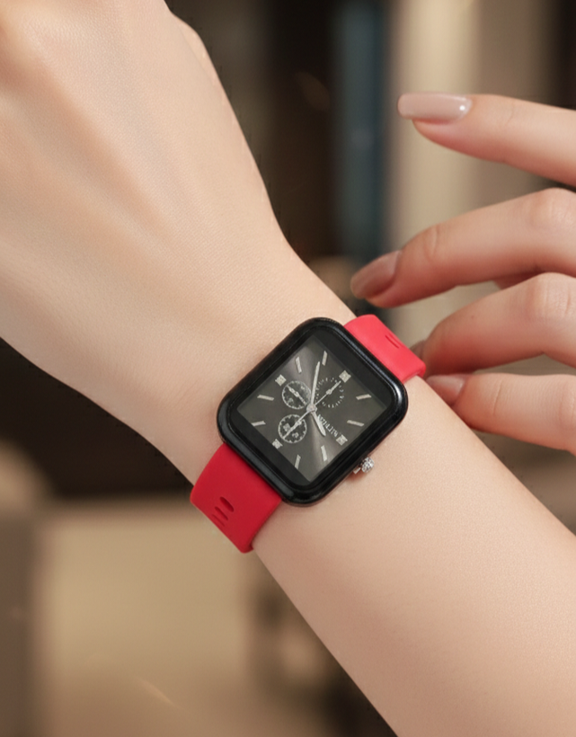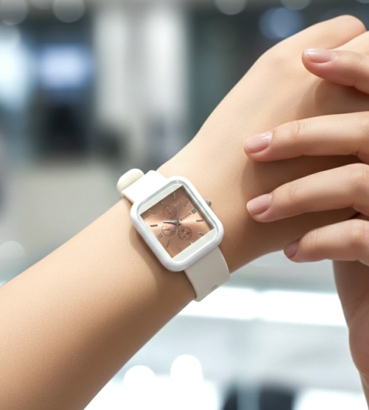 ساعت اسپورت دخترانه بولون | صفحه مستطیلی نگین‌دار بند سیلیکونی