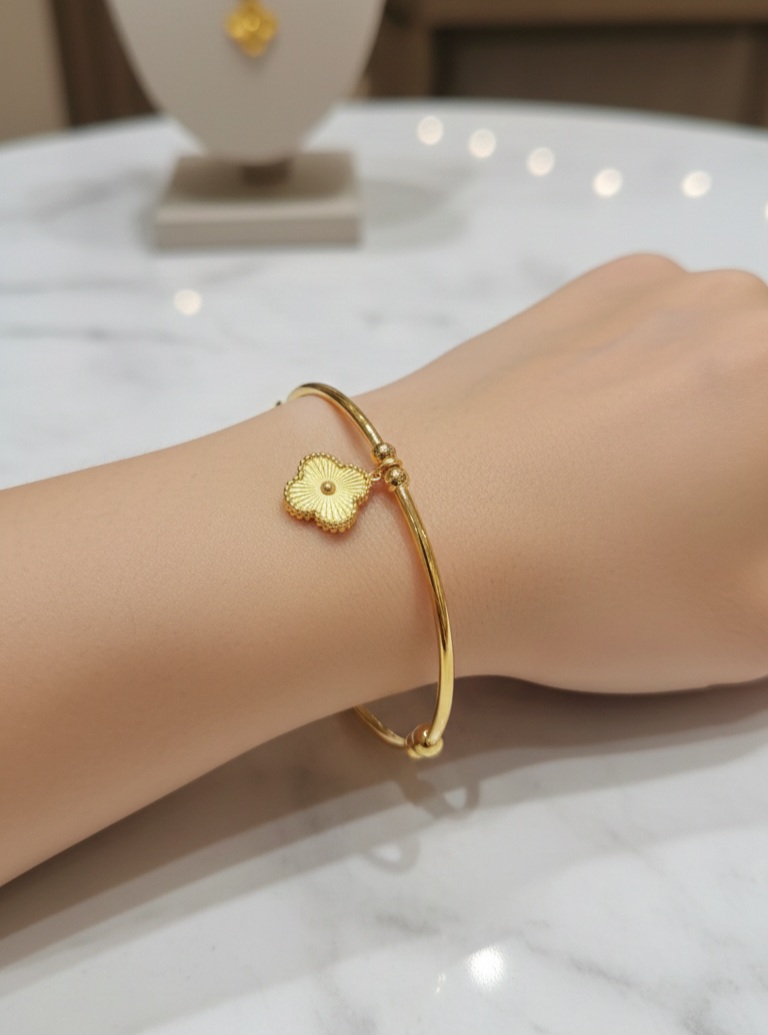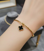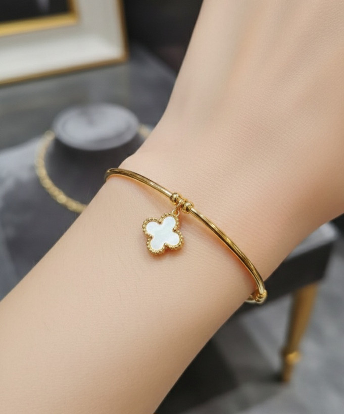 Van Cleef Inspired Bangle – Stainless Steel Gold Plated Bracelet (White, Black & Gold Charms)