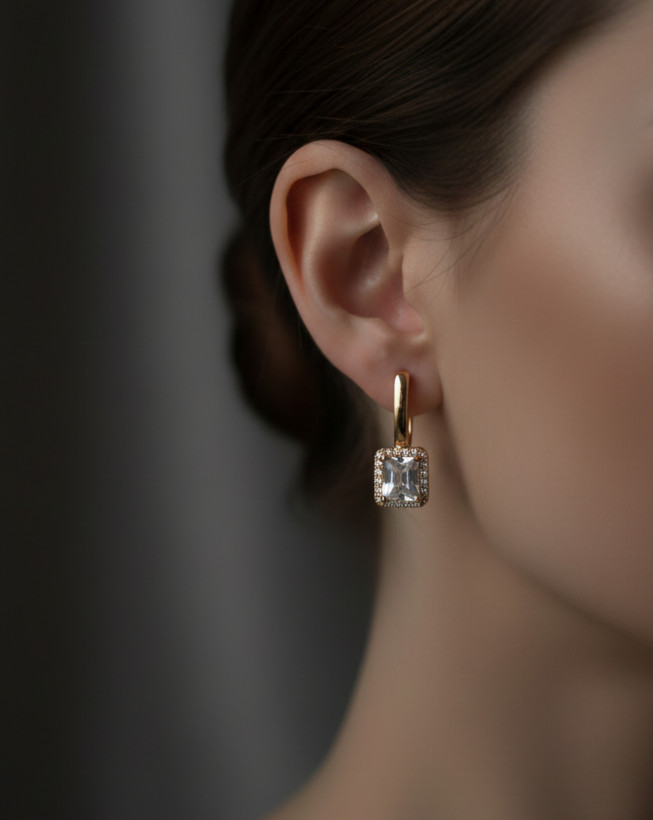 درخشش برجسته: نگینهای براق روی گوشواره باعث میشود زیر نور بدرخشد و نگاهها را جلب کند.