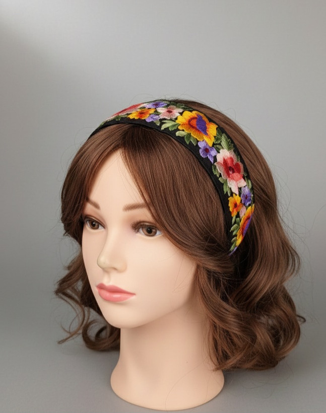 Embroidered Stretch Hairband – Adjustable Fit for Teens & Women