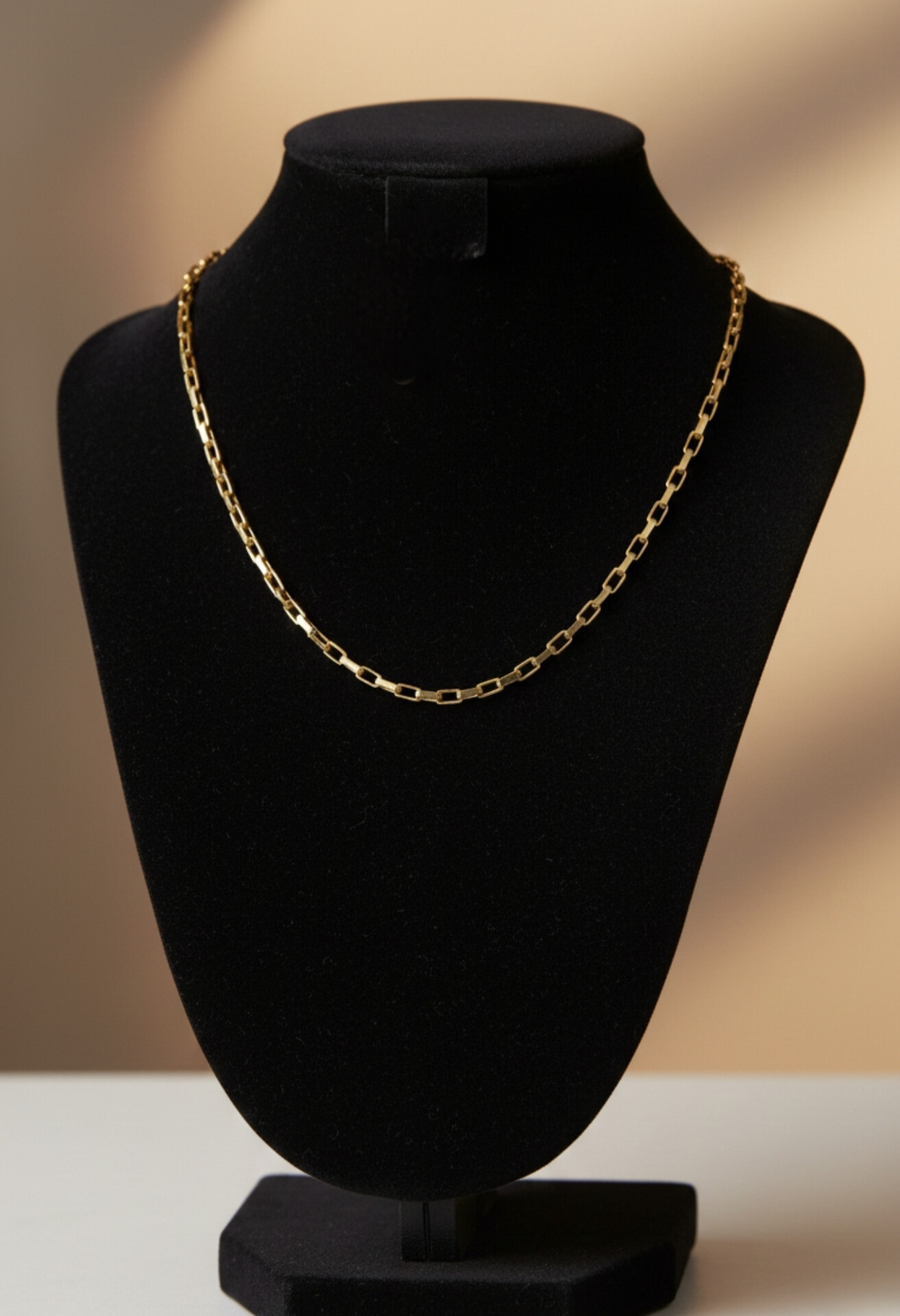 این زنجیر فلت کارتیه با حلقههای مستطیلی باریک، نسبت به مدلهای کارتیه کلاسیک ظاهری مینیمالتر دارد و همین موضوع آن را برای استایلهای روزمره بسیار محبوب کرده است. ضخامت ۲ میلیمتری باعث شده سبک، راحت و مناسب استفاده طولانیمدت باشد. قفل خرچنگی نیز کیفیت و امنیت استفاده را تضمین میکند. در مقایسه با بسیاری از محصولات مشابه بازار، آبکاری طلایی این مدل درخشش طبیعیتری دارد و استیل بهکاررفته مقاومت بیشتری در برابر خطوخش و تیرگی ارائه میدهد.