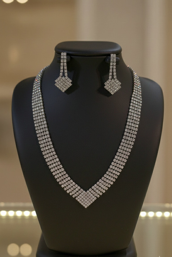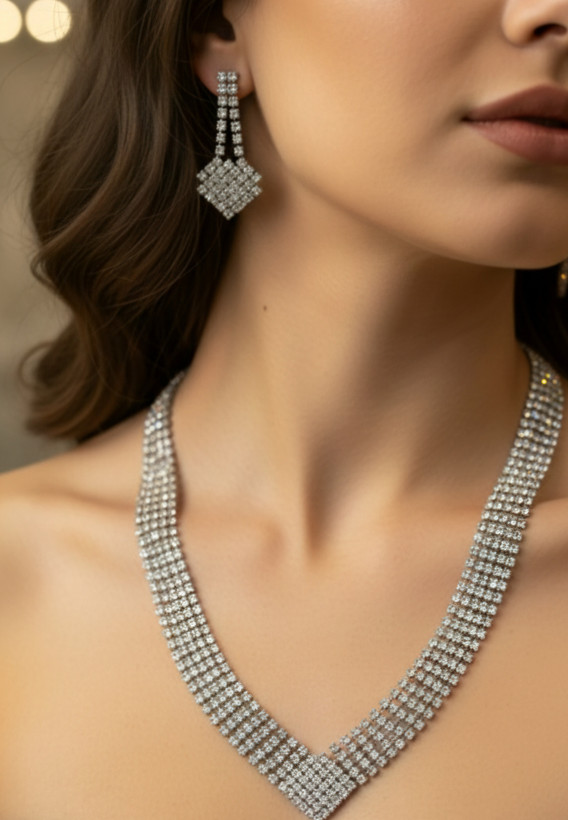 چون با یک نیمست، جلوهای کامل و مجلسی به استایل میدهد. طراحی چندردیفه، نگینهای اتمی براق و امکان تنظیم طول گردنبند، این محصول را به گزینهای مناسب برای مهمانیها، مراسم رسمی و حتی هدیه تبدیل کرده است؛ بدون نیاز به ستکردن جداگانه زیورآلات.