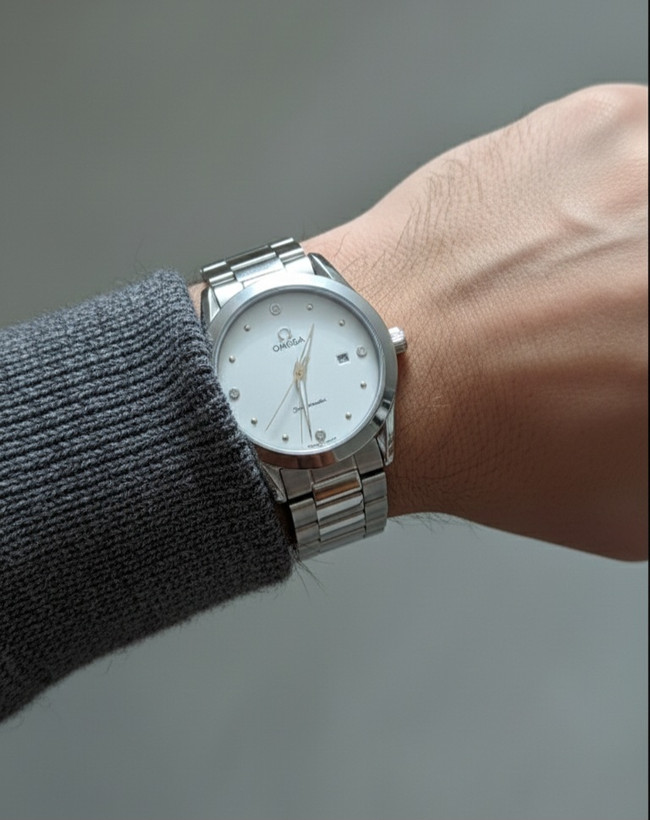 این مدل از امگا ترکیبی از ظاهر کلاسیک و کاربرد روزمره را ارائه میدهد. صفحه سفید با نمایش تاریخ خوانایی فوقالعادهای دارد و بند استیل با قفل تاشو ضامندار، تعادل بین راحتی و امنیت را برقرار میکند. نسبت به همردههای غیربرند یا برندهای اقتصادی، این ساعت با برند معتبر امگا ارزش ظاهری و ادراکی بالاتری دارد.