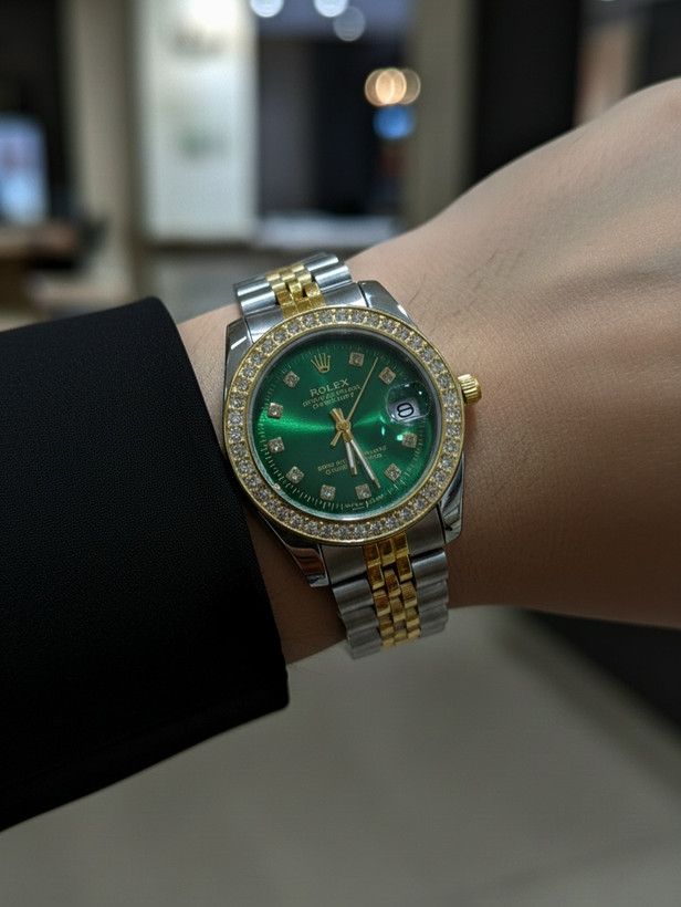 طراحی نگیندار، صفحه سبز خاص، بند دو رنگ و قابلیت نمایش تاریخ، آن را به گزینهای مناسب برای هدیه خاص یا تکمیل استایل مجلسی تبدیل کرده است.