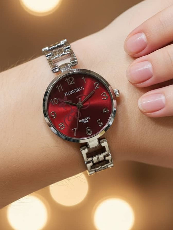 این ساعت زنانه از برند Hongrui با طراحی ظریف و ابعاد متعادل، انتخابی شیک برای استفاده روزمره و استایلهای نیمهرسمی است.