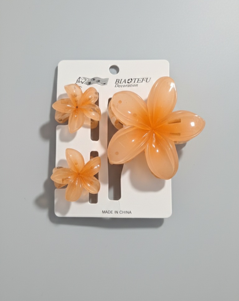 این پک ۳ عددی کلیپس مو با طراحی گل پلومریا، انتخابی شاد، کاربردی و ترندپسند برای استایلهای روزمره و تابستانی است.