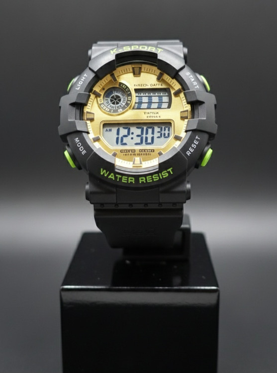 ساعت دیجیتال اسپرت مشکی با صفحه طلایی – برند COYOTE