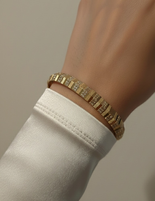 این النگو مناسب استفاده در استایلهای روزمره، نیمهرسمی و مجلسی است. رنگ طلایی براق آن به راحتی با لباسهای کلاسیک یا مینیمال ست میشود و ظاهر دست زنانه را شکیل و مرتب نشان میدهد. طراحی حکاکیدار باعث میشود محصول ساده اما چشمنواز باشد و جلوهای اغراقآمیز ایجاد نکند.