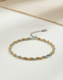 دستبند استیل طنابی دو رنگ زنانه با قفل خرچنگی