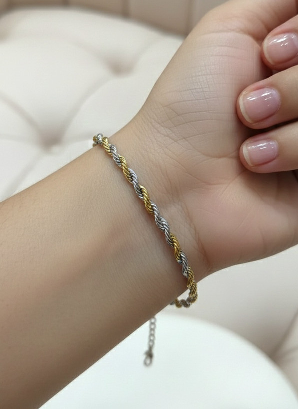 این دستبند برای استایلهای روزمره، نیمهرسمی و حتی مجلسی قابل استفاده است. ترکیب رنگ استیل و طلایی بهراحتی با ساعت، انگشتر یا سایر زیورآلات ست میشود و میتواند بهصورت تکی یا در کنار دستبندهای دیگر استفاده شود. طراحی طنابی آن باعث میشود ظاهر دست شلوغ یا اغراقآمیز نشود.