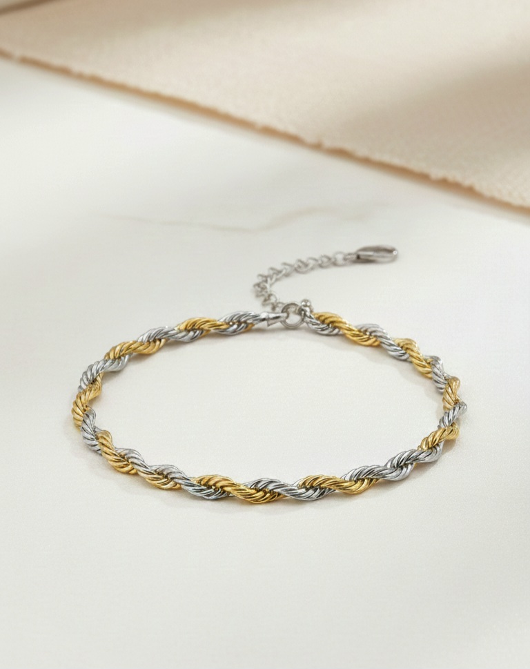 این دستبند برای استایلهای روزمره، نیمهرسمی و حتی مجلسی قابل استفاده است. ترکیب رنگ استیل و طلایی بهراحتی با ساعت، انگشتر یا سایر زیورآلات ست میشود و میتواند بهصورت تکی یا در کنار دستبندهای دیگر استفاده شود. طراحی طنابی آن باعث میشود ظاهر دست شلوغ یا اغراقآمیز نشود.