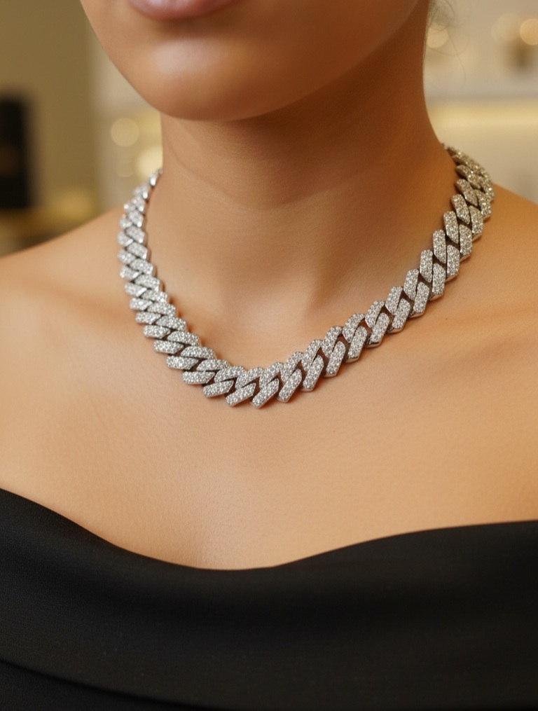 بافت گوبایی استاندارد، فول نگین بودن واقعی، طراحی یونیسکس و قفل ضامندار ایمن، این گردنبند را به گزینهای منطقی برای افرادی تبدیل کرده است که بهدنبال یک اکسسوری جسورانه، ترندی و چشمگیر با قیمت معقول هستند.