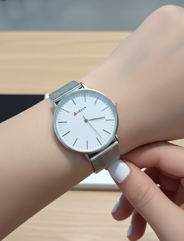 این ساعت برای استایلهای مینیمال، روزمره، اداری و نیمهرسمی گزینهای مناسب است. رنگ سفید صفحه بهراحتی با لباسهای روشن و تیره هماهنگ میشود و بند حصیری، ظاهری مرتب و مدرن به استایل دست میدهد.