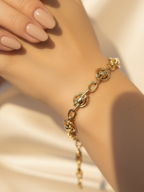 در مقایسه با دستبندهای زنجیری ساده، این مدل با استفاده از بافت ترکیبی جلوهای پویاتر دارد و کمتر یکنواخت به نظر میرسد. وزن متعادل، قفل خرچنگی مطمئن و یکنواختی رنگ طلایی از نقاط قوت آن است. طراحی بهگونهای انجام شده که هم برای استفاده روزمره مناسب باشد و هم در استایلهای شیک جلوه داشته باشد.