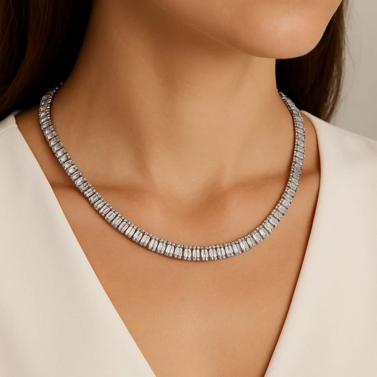 ترکیب نگینهای اتمی شفاف، طراحی کلاسیک تنیسی و قفل کتابی تاشو، این گردنبند را به گزینهای با ارزش خرید بالا تبدیل کرده است. ظاهر براق و درعینحال مینیمال آن باعث میشود برای استفاده در موقعیتهای مختلف مناسب باشد و بدون نیاز به تعویض، همیشه قابل استفاده باقی بماند.