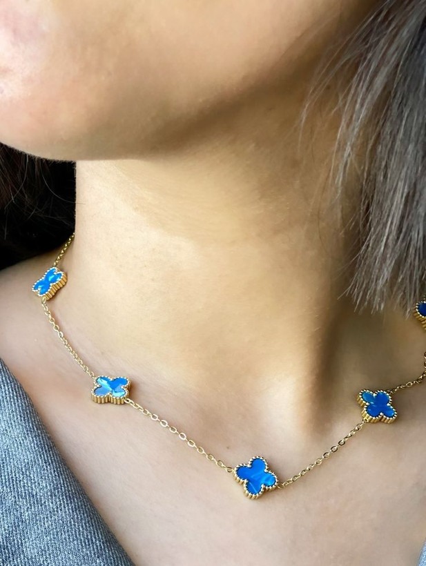گردنبند ونکلیف آبی با زنجیر طلایی | ظریف، شیک و الهامگرفته از جواهرات کلاسیک