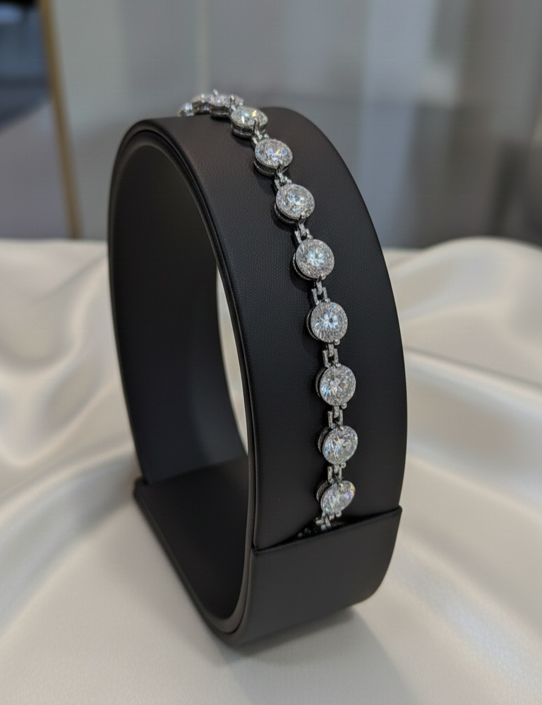این دستبند انتخابی مناسب برای استایلهای مجلسی، نیمهمجلس و ترکیبهای خاص است. بهتنهایی نقش اکسسوری اصلی را ایفا میکند و بهتر است با زیورآلات سادهتر ست شود تا جلوه نگینها بهخوبی دیده شود. در استایلهای مینیمال، بهعنوان نقطه تمرکز دست بسیار مؤثر عمل میکند.