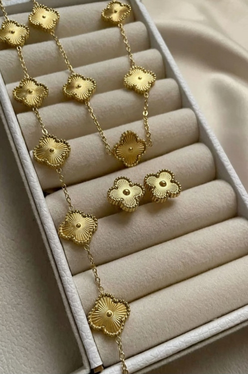 ست سهتکه ونکلیف طلایی | گردنبند، گوشواره و دستبند