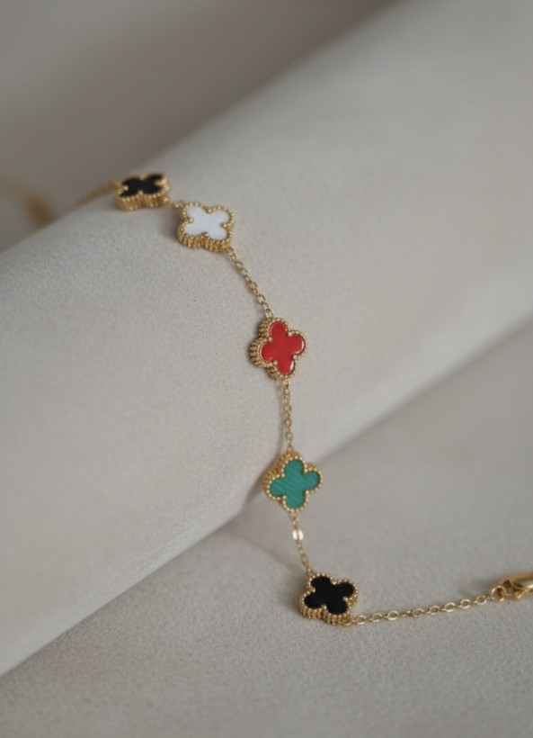 در مقایسه با بسیاری از دستبندهای ونکلیف موجود در بازار که تکرنگ یا تکپلاک هستند، این مدل با پنج پلاک رنگی، جلوه بصری قویتری دارد. ترکیب رنگها بهگونهای است که شلوغ به نظر نمیرسد و همچنان حس ظرافت را حفظ میکند.
